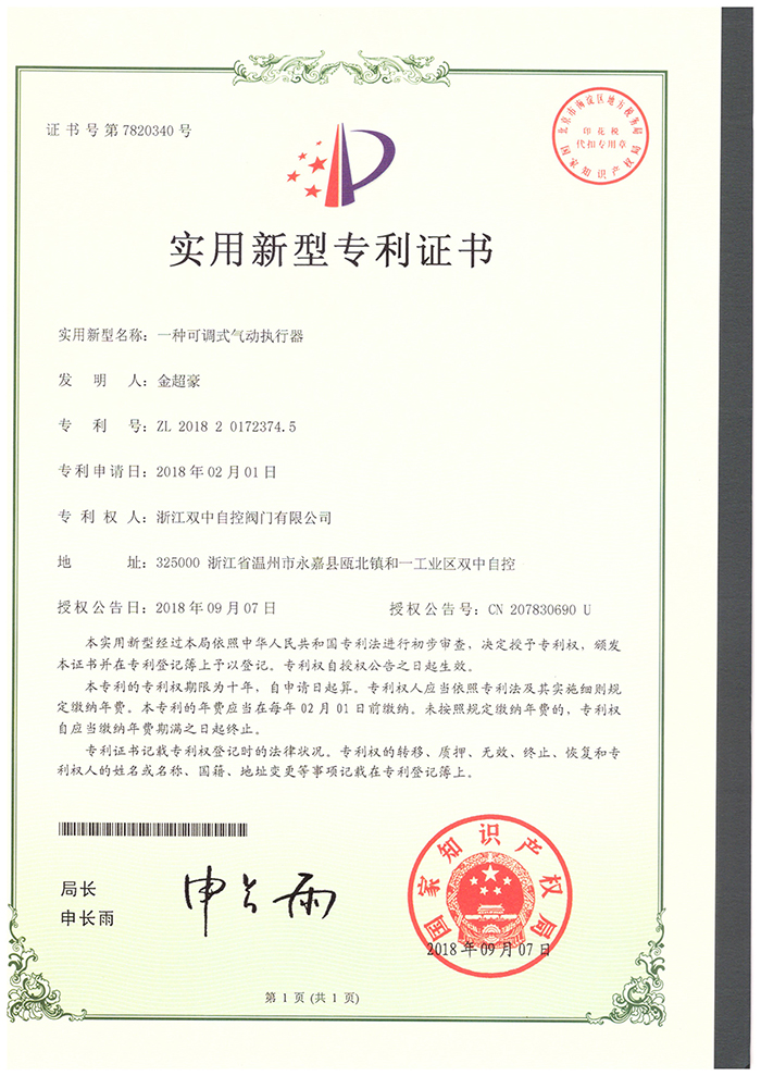 產品中心 企業榮譽>> 專利證書執行器 返回首頁